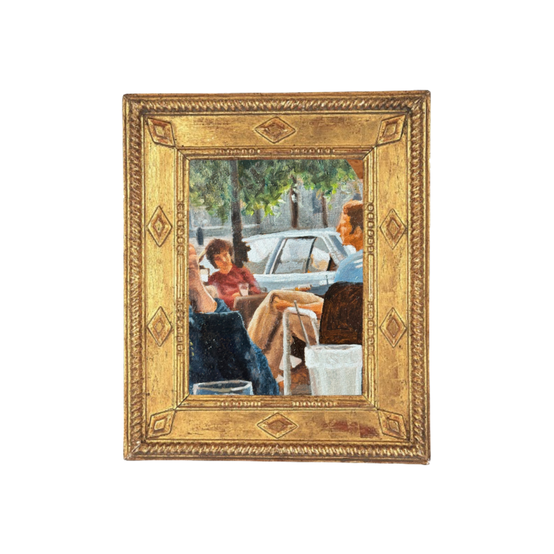 Nerine Cavadias, Camera-Happy in Belgium, Aug '81, Oil on Wood, 8" round, detail