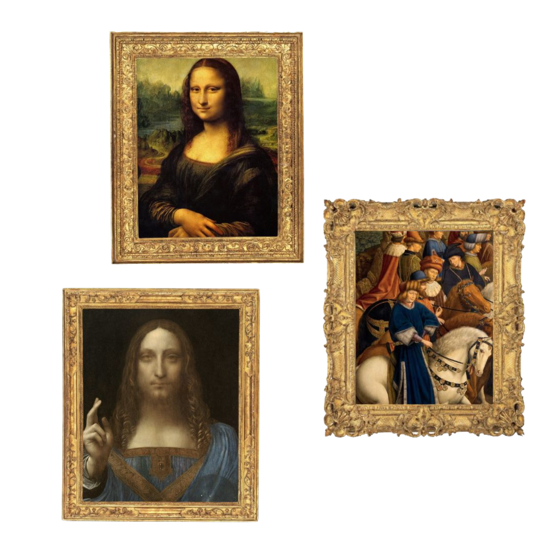 Leonardo Da Vinci, Mona Lisa, c. 1503–1506, Louvre, Paris, Jan van Eyck, The Just Judges, 1430-1432, Attr. Leonardo Da Vinci, Salvator Mundi, c. 1499–1510