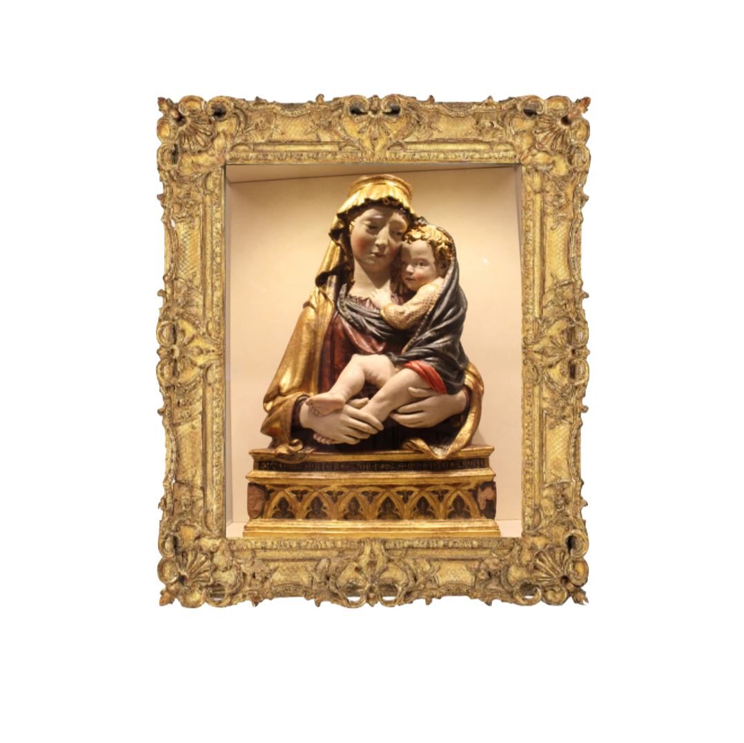 Lorenzo Ghiberti, Nanni di Banco, or Fillipo Brunelleschi, attributed (sculptors) and unknown artists, Madonna and Child, 15th century, painted and gilded terracotta, Museo Bandini, Fiesole (Photo: Una D’Elia)